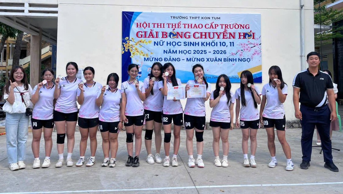 Giải bóng chuyền hơi nữ học sinh khối 10, 11 năm học 2025-2026 không chỉ là sân chơi thể thao bổ ích mà còn góp phần tăng cường tinh thần đoàn kết, rèn luyện sức khỏe và tạo nên những kỷ niệm đẹp trong đời sống học đường của học sinh Trường THPT Kon Tum.